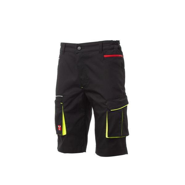 Questi bermuda sono realizzati in 50% poliestere, 26% cotone, 24% elastomultiestere, progettati per garantire elasticità, leggerezza e durabilità. Il design con numerose tasche funzionali, dettagli retroriflettenti e chiusure sicure li rende ideali per l’attività lavorativa in sicurezza e comfort.